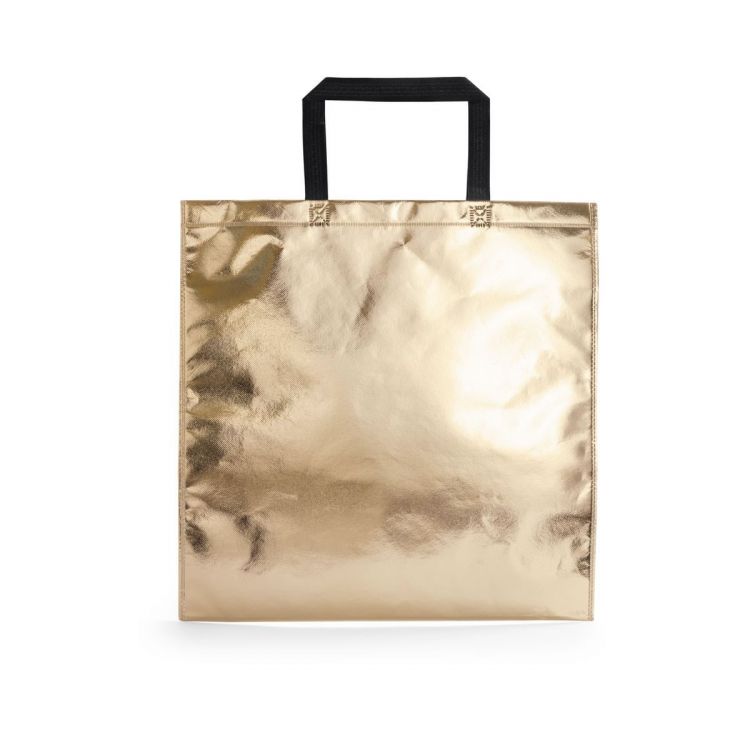 Shopper in TNT laminato di colore metallico, con manici di media lunghezza.