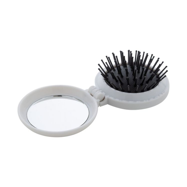 Spazzola pieghevole in ABS riciclato con specchietto, in colore bianco