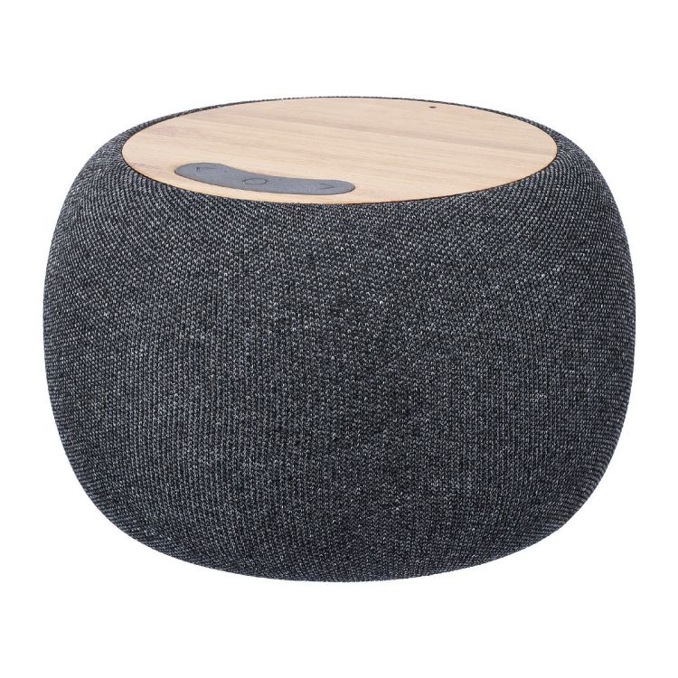 Speakeri wireless in bambù e ABS riciclato con dettagli in tessuto intorno al diffusore, uscita 5W, ingresso DC 5V, batteria ricaricabile integrata da 1200mAh con 6 ore di autonomia, distanza operativa di 15-20 metri, rapporto segnale/rumore di 87 dB, gamma di frequenza: 100 Hz a 20 kHz, include cavo per la ricarica Type-C da 50 cm, tecnologia di connessione wireless: 5.2, la ricarica wireless da 5W, confezionato singolarmente in una scatola in cartone avana, in colore nero