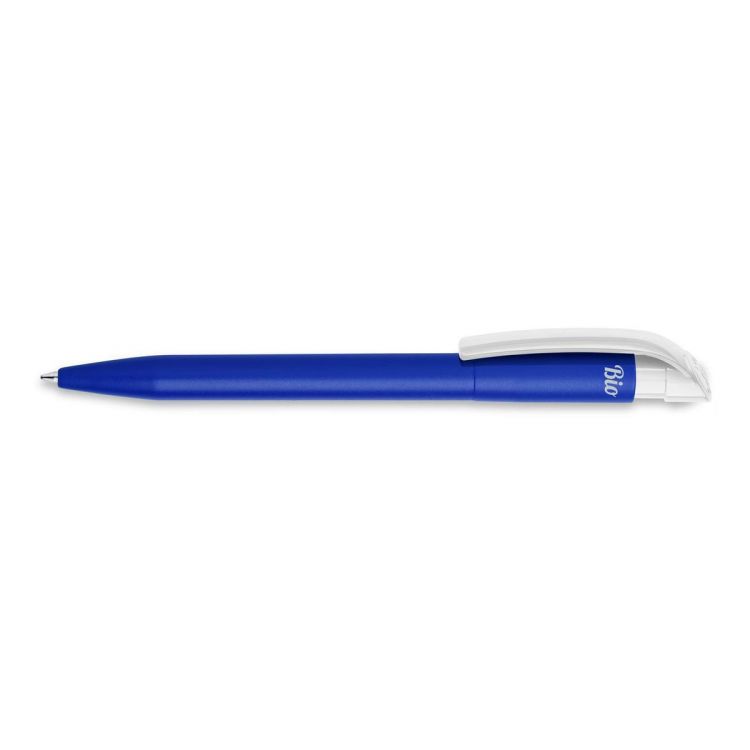 Stilolinea, penna S45 BIO, realizzata al 75% in PLA, clip bianca, refill blu. Fornito del certificato German Dokumental Ink.