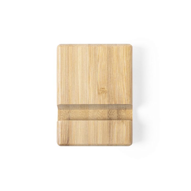 Supporto per dispositivi mobili della linea Nature,adatto a smartphone e tablet. Realizzato in robusto bambù con finitura laccata, con una fessura/supporto su entrambi i lati. (colore naturale)