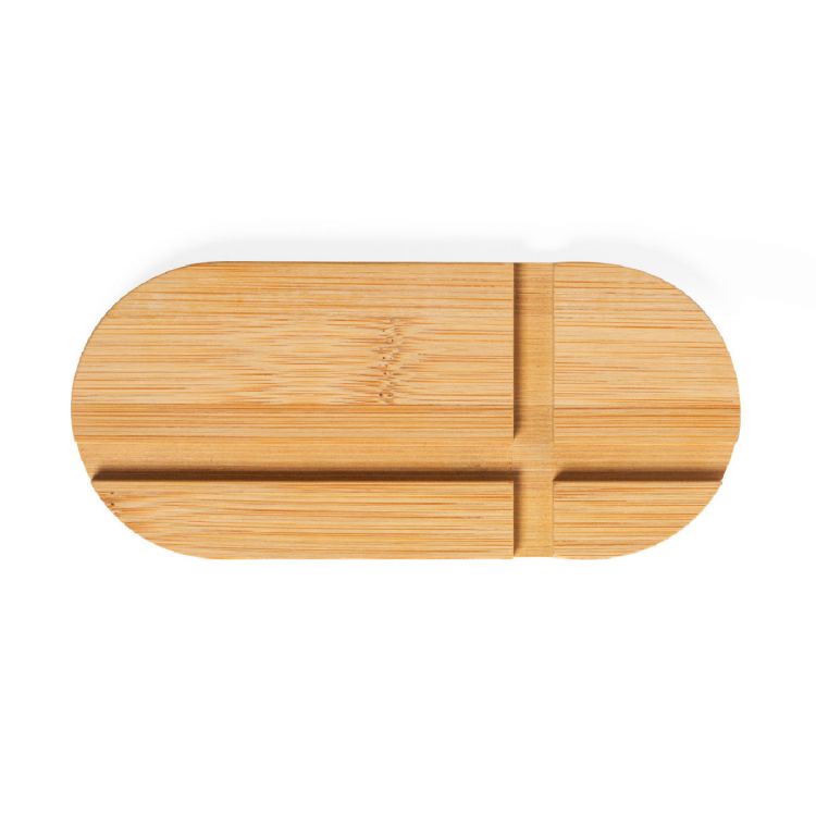Originale e semplice supporto della linea natura per smartphone e tablet. Fatto di bambù tagliato naturalmente. Confezionato in un'attraente scatola individuale con un design ecologico (colore naturale)