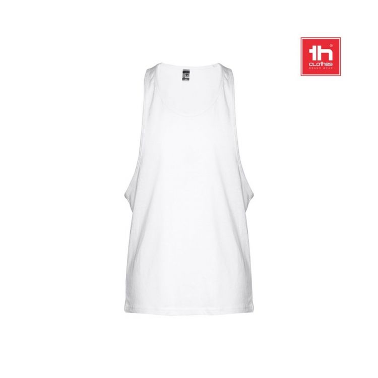 Canotta da uomo in jersey 100% cotone (140 g/m²) con filo di cotone cardato (colore 194, 195 e 199: 60% cotone/40% poliestere e colore 183: 90% cotone/10% viscosa). Taglio largo. Cucitura doppia sulla parte inferiore