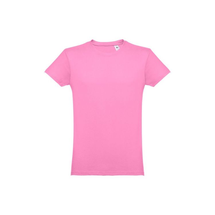 T-shirt da uomo tubolare di taglio regolare in jersey cotone 100% (150 g/m²) con filo di cotone cardato (colore 183: 90% cotone/10% viscosa). Girocollo a costine 1x1 e nastro di rinforzo in jersey. Doppie cuciture sulle maniche e sull'orlo inferiore, in colore rosa chiaro, taglia M