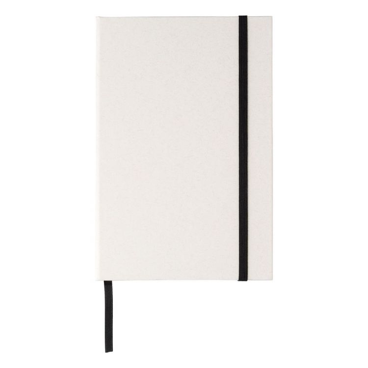 Taccuino in cartone del latte riciclato, formato +/- A5, 80 pagine, elastico e segnalibro, realizzato per il 70% in cartone del latte riciclato e per il 30% in carta riciclata, include logo ‘cartone del latte’ stampato a caldo sul retro, in colore bianco / nero