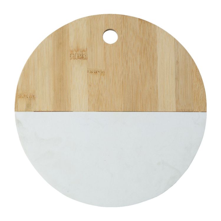 Tagliere in bambù e pietra con aspetto marmo, foro per il pollice, in colore marrone