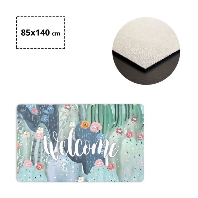 Tappeto in gomma naturale antiscivolo e robusto tessuto in poliestere stampato in digitale. Consigliato l'utilizzo in ambienti interni.