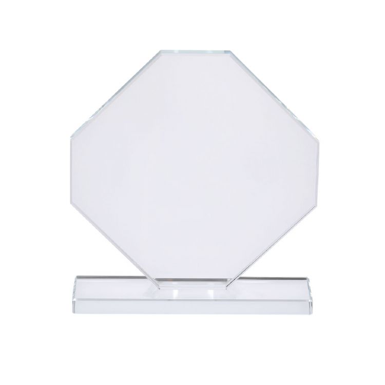 Placco trofeo realizzato in vetro spesso con un elegante design ottagonale con supporto. Ideale per regali personalizzati, riconoscimenti, premi e decorazioni. Presentata in una custodia protettiva individuale con un design elegante. (colore bianco trasparente)