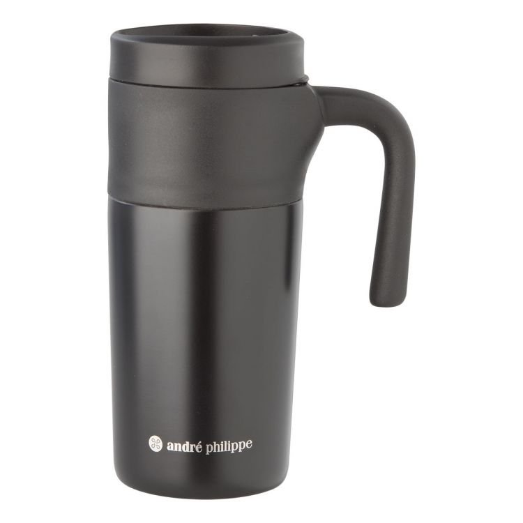 Tazza mug termica da 330ml. in acciaio a parete singola con tappo e manico in plastica. Fornita in scatola regalo. Prodotto a marchio André Philippe.