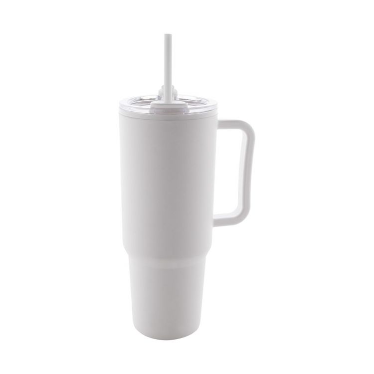 Tazza mug termica da 1100ml. in plastica PP a doppia parete con coperchio e cannuccia.