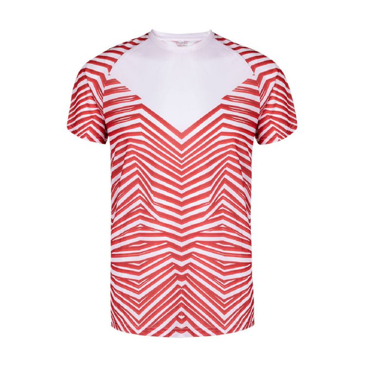 T-shirt tecnica taglia adulto in poliestere da 135 gr/mq, traspirante e morbida al tatto. Con innovativa stampa a righe e zona liscia sul petto per la personalizzazione. Con maniche raglan e scollo tondo. Disponibile in un'ampia gamma di colori e nelle taglie XS, S, M, L, XL, XXL.