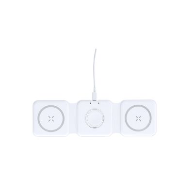 CaricatoreCaricabatterie wireless dal design minimalista in bianco. Con doppia uscita USB da 2.100 mA per la ricarica simultanea di due dispositivi. Con base antiscivolo. Compatibile con i dispositivi dotati di tecnologia di ricarica wireless e presentato in una scatola dal design accattivante. (colore bianco)