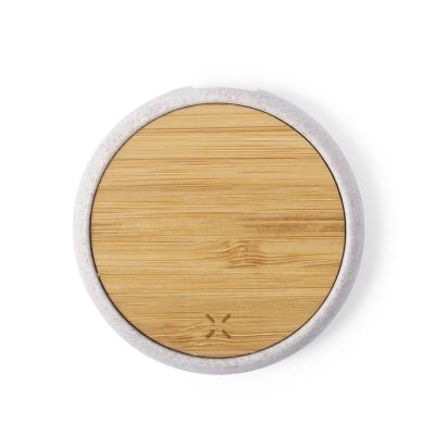 CaricatoreCaricabatterie wireless con un design circolare con una superficie di ricarica in bambù e un rivestimento in canna di grano, al fine di promuovere l'uso di materie prime naturali e ridurre le emissioni inquinanti. Indicatore led, con cavo di ricarica micro USB incluso e compatibile con dispositivi dotati di tecnologia di ricarica wireless. Protezione di sicurezza per prevenire surriscaldamento, sovraccarico e cortocircuito. Presentato in un'attraente scatola dal design naturale (colore naturale)