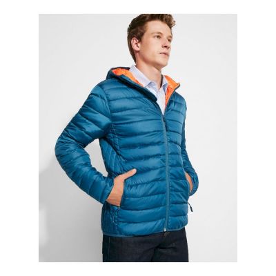 Giacca da uomo con cappuccio in taffetà 300TGiacca da uomo con cappuccio in poliestere 300T taffetà (95% poliestere e 5% elastam) (280 g/m²). Taglio estetico nella zona del petto, dov'è possibile la personalizzazione. Cappuccio con stopper e tasche interne