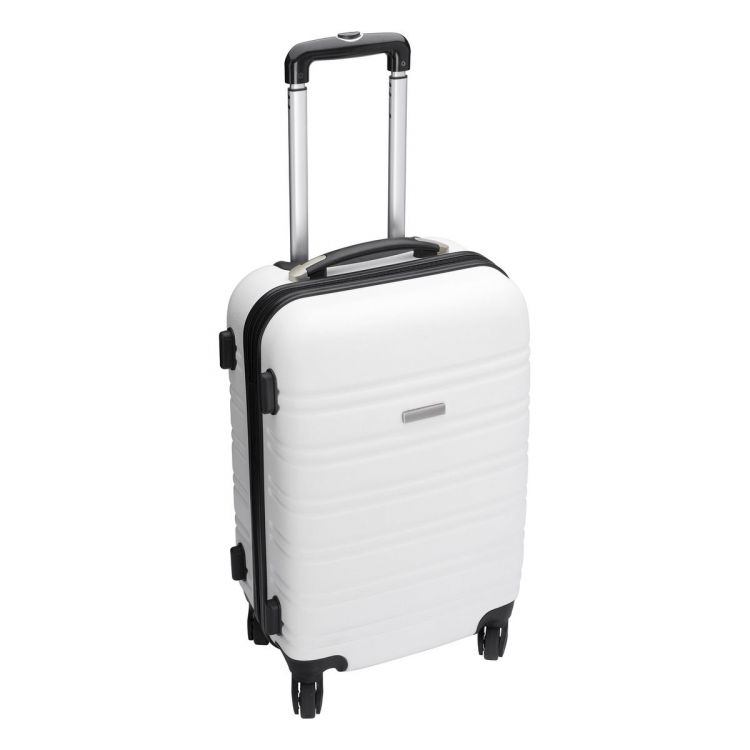 Trolley rigido in ABS con 4 rotelle girevoli, manico estensibile, include lucchetto numerico, placca di metallo per la personalizzazione, in colore bianco