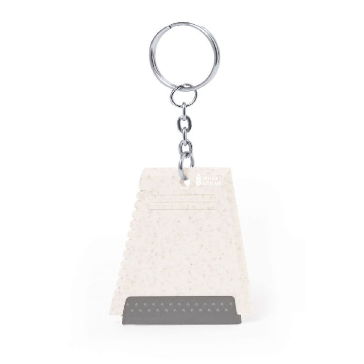 Pratico portachiavi raschietto per il ghiaccio realizzato in fibra di grano. Dotato di dentini per affrontare il ghiaccio più duro e di un accessorio per la pulizia. Logo fibra di grano nell'angolo in alto. Presentato singolarmente in un sacchetto di carta kraft.La fibra di grano favorisce l'utilizzo di materie prime naturali, riducendo così le emissioni inquinanti. (colore naturale)
