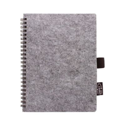 Block NotesTaccuino ad anelli con copertina in morbido feltro RPET riciclato. Interno con 100 fogli bianchi con layout a riga. Include un badge in RPET. Presentato in busta individuale riciclata.Il feltro RPET riciclato è il risultato della combinazione del processo di riciclo delle materie plastiche con la tecnica millenaria di produzione del feltro, dando vita a un materiale di eco-tendenza che, oltre a essere di origine riciclata, diventa anche riciclabile. (colore grigio)