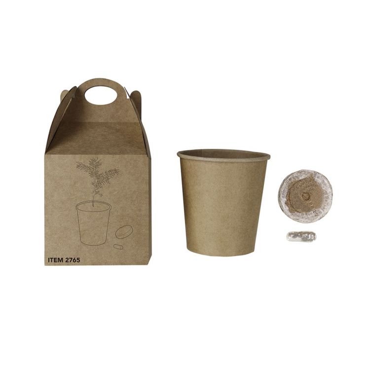 Vaso con semi di pino. Include substrato, vaso di cartone riciclato e semi di pino in una capsula. Presentato in una originale scatola di cartone kraft con manico. Include istruzioni per la semina e distintivo. (colore naturale)