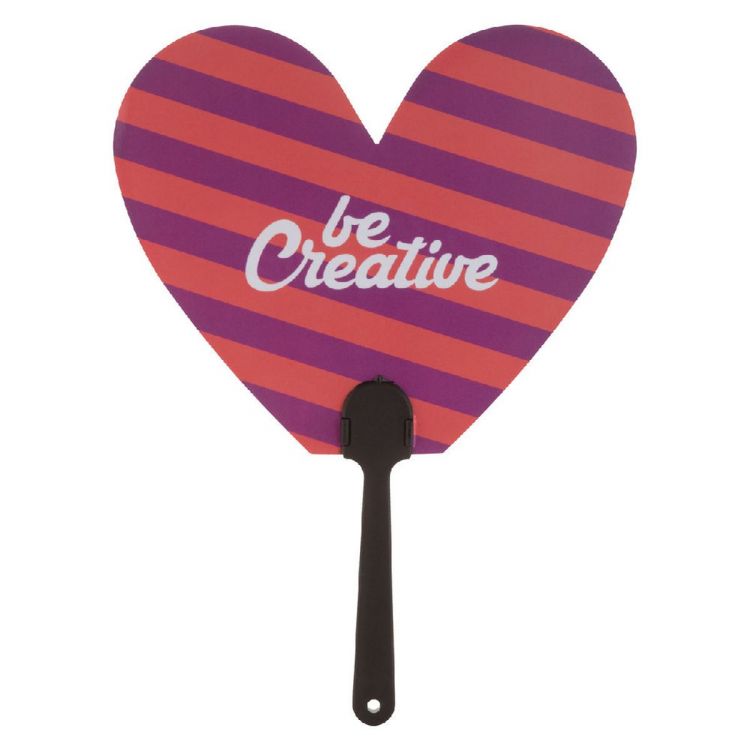 Ventaglio personalizzabile con manico in plastica e carta laminata. Stampa digitale con la tua grafica su entrambi i lati. MOQ: 100 pezzi.