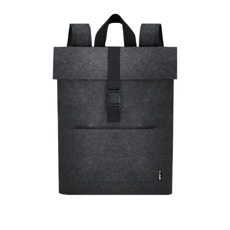 Zaino in feltro RPET. Dispone di tasca principale con chiusura a fibbia e tasca frontale aggiuntiva con chiusura a zip. E' dotato di cinghie per le spalle regolabili e rinforzate e maniglia superiore. Include distintivo RPET sull'etichetta esterna.Il feltro RPET è il risultato della combinazione del processo di riciclo di materiali plastici insieme alla tecnica millenaria di produzione del feltro, producendo un materiale eco-tendenziale che, oltre ad essere di origine riciclata, diventa anche riciclabile. (colore grigio)
