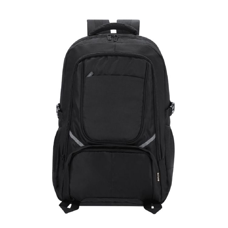 Zaino realizzato in nylon riciclato 420D. Dotato di uno scomparto principale con chiusura a zip e doppio tiretto. Tasche laterali in rete e cinghie regolabili con fibbia. All’interno è presente una tasca imbottita per laptop fino a 15 pollici. Include inoltre due tasche frontali con chiusura a zip e bande riflettenti. Schienale e spallacci regolabili imbottiti, con fibbia di chiusura sul petto per una maggiore stabilità. (colore nero)