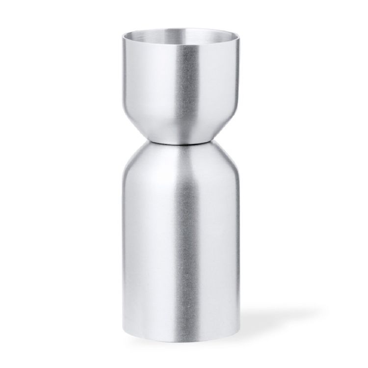 Bicchiere dosatore per bevande in acciaio inox con finitura opaca. Appositamente progettato per la stampa laser e presentato in una scatola kraft di design. (colore argento)